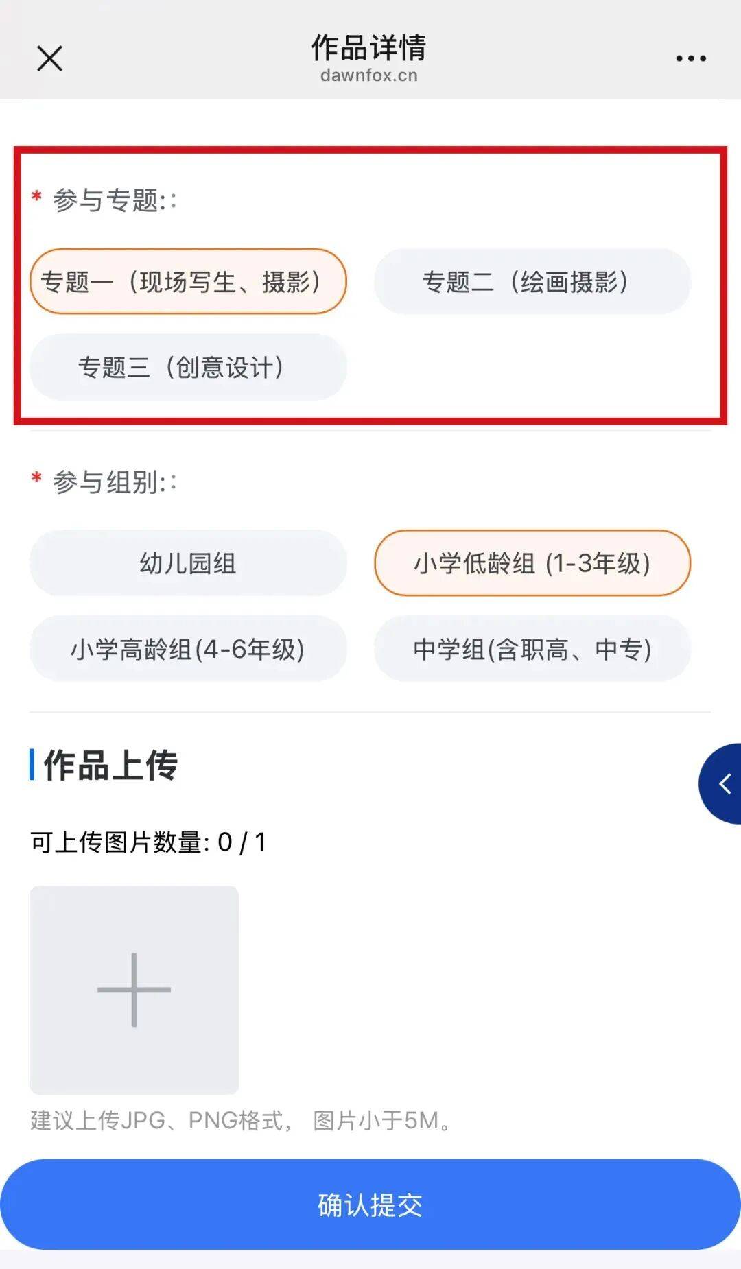 写报名原料时重心讲明:填,题(比方:作品属专题一必需切确勾选作品所属专,专题一”)则勾选“。误视为无效报名未勾选或勾选错,与评审无法参。
